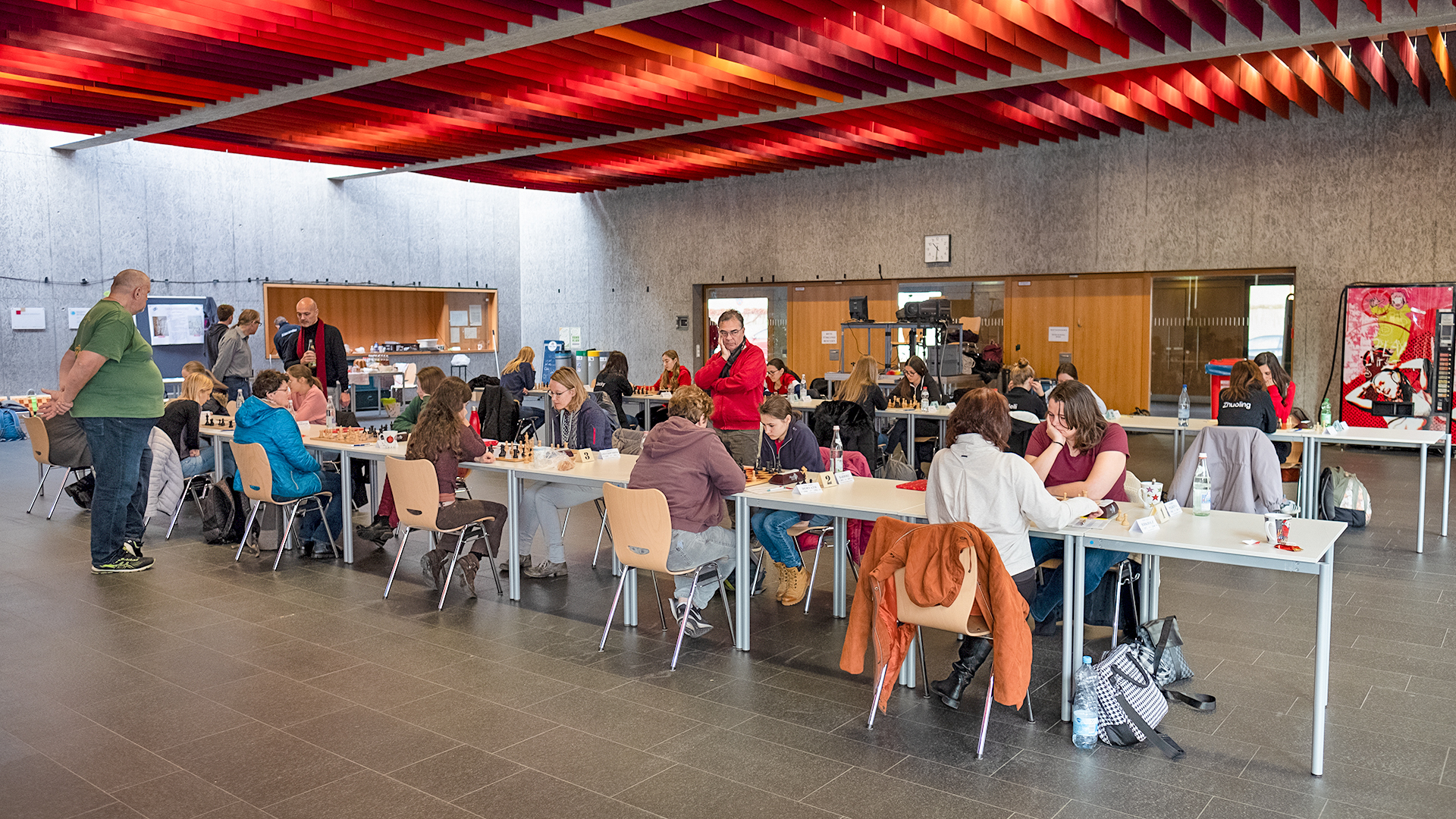 Gespielt wurde an beiden Tagen in der sehr geräumigen Aula des Goethe Gymnasium. Die Spielbedingungen waren hervorragend. Die Augsburgerinnen haben ihre Aufstellung verstärkt. Schlägt das Imperium gegen die Träger der roten Laterne, nämlich Augsburg heute zurück? Nachdem ich verschlafen hatte, Sophia unterwegs eingesammelt wurde, Peter zum Glück vor Ort die Mannschaftsaufstellung abgeben konnte, sollte nach Murphys Law alles seinen Lauf nehmen.