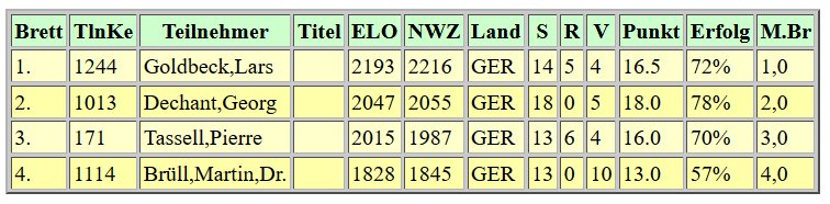 Unser Team mit Lars Goldbeck am Spitzenbrett, gefolgt von Georg Dechant, Pierre Tassell und Martin Brüll landeten schließlich auch auf besagtem 5. Platz.