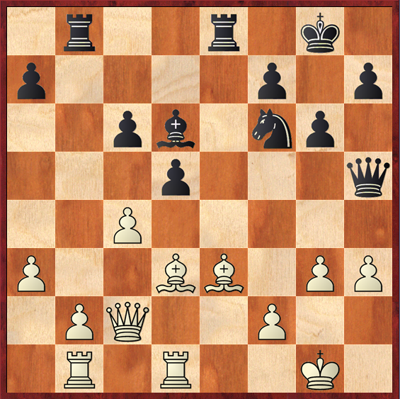 schätzte Lennart korrekt ein, dass der schwarze Königsangriff abwehrbar sein sollte und ging mit 23. Lxa7 auf Materialfang. Der Druck auf der h-Linie war nicht das Problem: 23. … Dxh3 24.Lf1 Dh5 25.Lxb8 Sg4 26.Lg2. Nach einem Damenschach auf h2 geht der König nach f1 und es ist zwar eng, er hat aber erstmal Ruhe. Vorsichtig muss man nur mit möglichen Springergabeln auf e3 sein, aber Lxg3 geht wegen Lxg3 ja nicht, auf Txb8 wäre mit De2 auch wieder alles sicher gewesen. Daher baute Schwarz mit 26. … Lc5 Druck auf f2 aus. Hätte Lennart jetzt 27.Ld6! gespielt, dann hätte es entweder nach 27. … Lxd6 28.Te1 oder nach 27. … Lxf2+ 28.Dxf2! Sxf2 29.Kxf2 mit ungleichem Material (Turm und Läuferpaar für die Dame) interessant weitergehen können. In der Zeitnot wählte er aber 27. La7 Lxa7 28.c5 worauf Schwarz mit 28. … Te6! den Angriff fortsetzte. 29.Td4 Lb8 30.Dd1?? war der finale Fehler, worauf Schwarz mit 30. … Dh2+ 31.Kf1 Sxf2! die f-Linie und den Punkt g3 zum Sieg öffnete.
