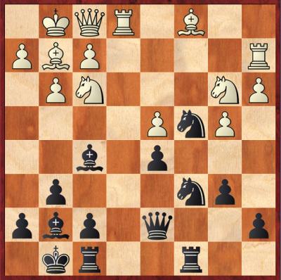 Es gibt Eröffnungen, nach denen die Partie üblicherweise nicht Remis ausgeht, wie z.B. die Sweschnikow-Variante im Sizilianer. Eric Gabler an Brett 1 hatte nach einigen stellungstypisch verwickelten Taktiken einen Läufer mehr, aber sein Gegner Andreas Bauer dafür drei verbundene Mehrbauern am Damenflügel.