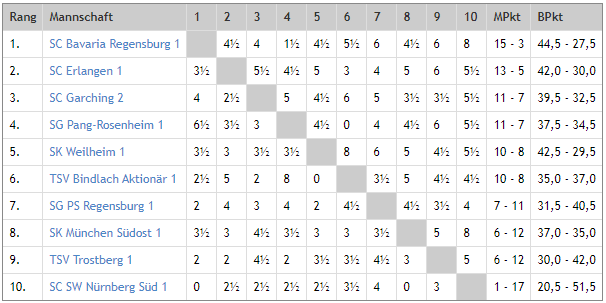 In den ersten zwei Runden erwarteten uns zwei sehr starke Mannschaften von München Südost und Erlangen. Beide Mannschaftskämpfe gestalteten sich als äußerst schwierig und umkämpft. Mit dem Glück der Tüchtigen und Zeitnotschlachten, an die sich die Menschheit erinnern wird, konnten wir beide Kämpfe knapp mit 4,5-3,5 gewinnen. Im Nachhinein sollten diese zwei Siege sehr wichtig sein. Außerdem förderten sie unsere Teammoral.