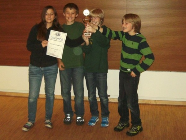 Großen kämpferischen Einsatz zeigte unsere jüngste Mannschaft. Rostislav Ganchev, Kevin Varga-Barna, Tobias Poisel und Mia Pröbster stemmten sich mit viel Kampfgeist gegen die zum Teil 2 Jahre älteren Gegner und schafften es den letzten Platz zu vermeiden.